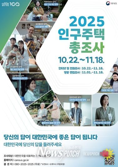뉴스펀치 김완규 기자 | 구로구는 10월 22일부터 11월 18일까지 ‘2025 인구주택총조사’를 단계적으로 실시한다. 조사 방식은 인터넷·전화조사와 방문면접조사를 병행하며, 먼저 비대면 조사를 진행한 뒤 미응답 가구를 대상으로 조사원이 직접 방문하는 방식으로 진행된다.