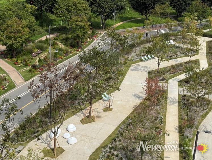 뉴스펀치 김완규 기자 | 서울 성동구는 중랑천 유휴부지를 활용해 자연 속에서 편안하게 머물며 쉴 수 있는 ‘용비쉼터 정원’을 조성했다고 밝혔다.