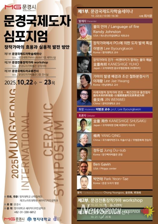 뉴스펀치 김길룡 기자 | 문경시는 오는 10월 22일에서 23일까지 국내외 도예 관련자 및 지역도예가 100여 명이 참여하는 가운데 문경도자기박물관과 문경새재 페트로호텔에서 ‘2025 문경국제도자심포지엄’을 개최한다.