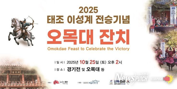 전주시는 오는 25일 오후 2시, 오목대 등 전주한옥마을 일원에서 ‘2025 태조 이성계 오목대 잔치 행사’를 개최한다.