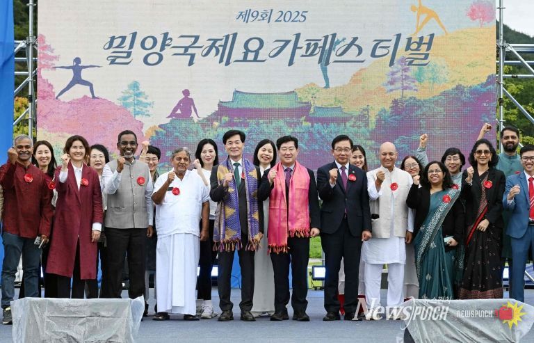뉴스펀치 김길룡 기자 | 경남 밀양시와 월드요가테라피협회(WYTA)가 주최하고 비베카요가(대표 김은주)가 주관한 ‘제9회 2025 밀양국제페스티벌’이 지난 18일과 19일 양일간 선샤인 밀양 테마파크 일원에서 국내·외 요가 전문가, 시민, 관광객 등 1,000여 명이 참가한 가운데 성황리에 열렸다.