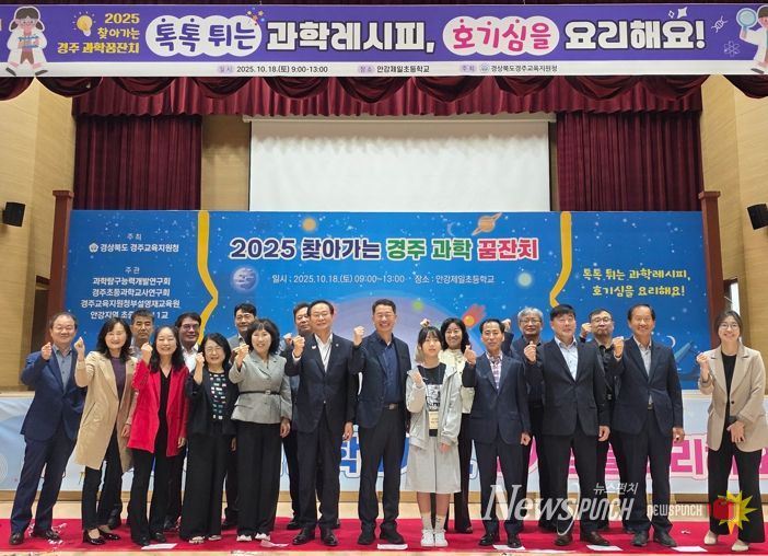 뉴스펀치 김길룡 기자 | 경상북도경주교육지원청은 10월 18일 안강제일초등학교에서 학생과 학부모, 지역주민 등 1000여명이 참석한 가운데 ‘톡톡 튀는 과학레시피, 호기심을 요리하다’라는 주제로‘2025 찾아가는 경주과학꿈잔치’를 개최했다.
