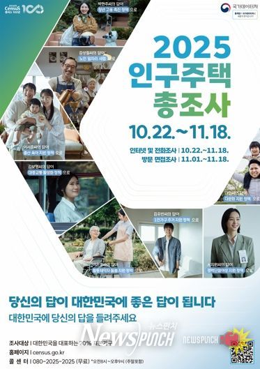 뉴스펀치 정홍균 기자 | 진안군은 10월 22일부터 11월 18일까지 ‘2025 인구주택총조사’를 실시한다.