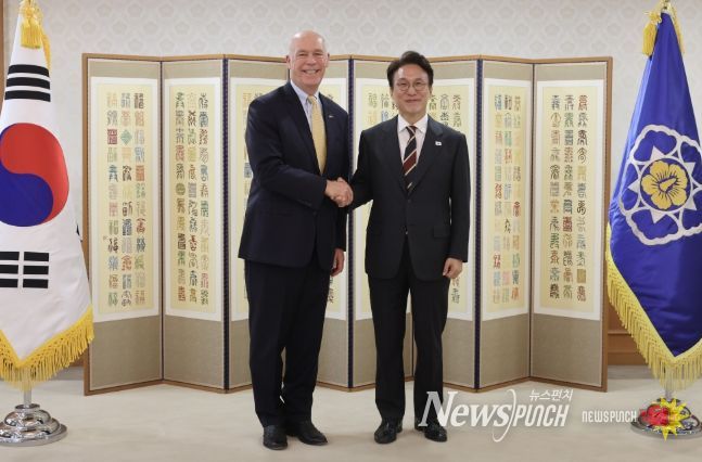 뉴스펀치 김용희 기자 | 김민석 국무총리는 10월 20일 오전 정부서울청사에서'그레그 지안포르테(Greg Gianforte)' 미국 몬태나 주지사를 접견하고, 한-몬태나 실질협력 강화 방안 및 한미관계 등에 관해 의견을 교환했다.