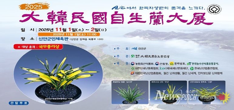 뉴스펀치 김길룡 기자 | 2025 대한민국자생란대전이 오는 11월 1일부터 2일까지 압해도 신안군민체육관에서 개최된다. 이번 대전은 전국에서 출품된 약 2,000여 점의 자생란 작품을 선보이며, 멸종위기종을 포함한 희귀 자생란의 보존과 난문화 대중화, 산업화 기반 조성을 목표로 한다.