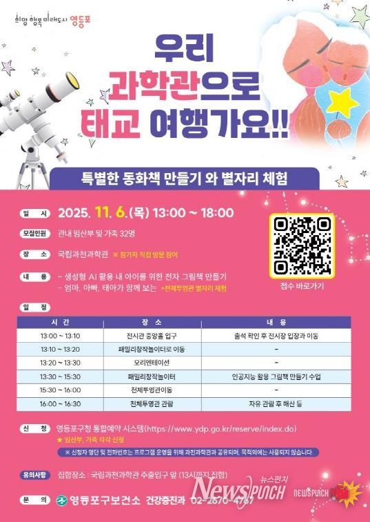 뉴스펀치 김완규 기자 | 영등포구가 예비 부모와 태아가 함께 교감하는 특별 체험 프로그램 ‘과천과학관 태교 여행’ 참여자를 모집한다고 밝혔다.