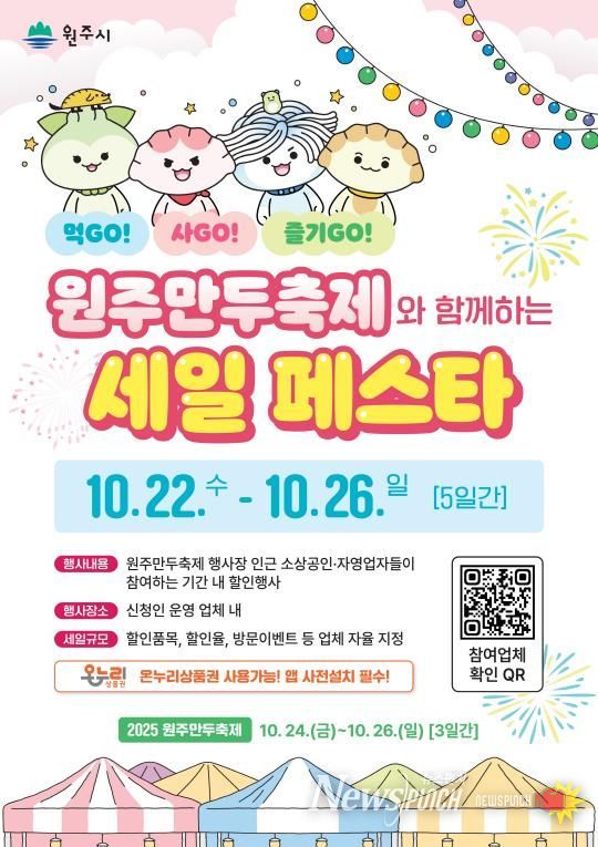 뉴스펀치 김길룡 기자 | 원주시는 지역 대표 축제인 원주만두축제와 연계해 구도심 상권을 활성화하기 위해 오는 22일부터 26일까지 5일간 ‘원주만두축제와 함께하는 세일 페스타’를 개최한다.