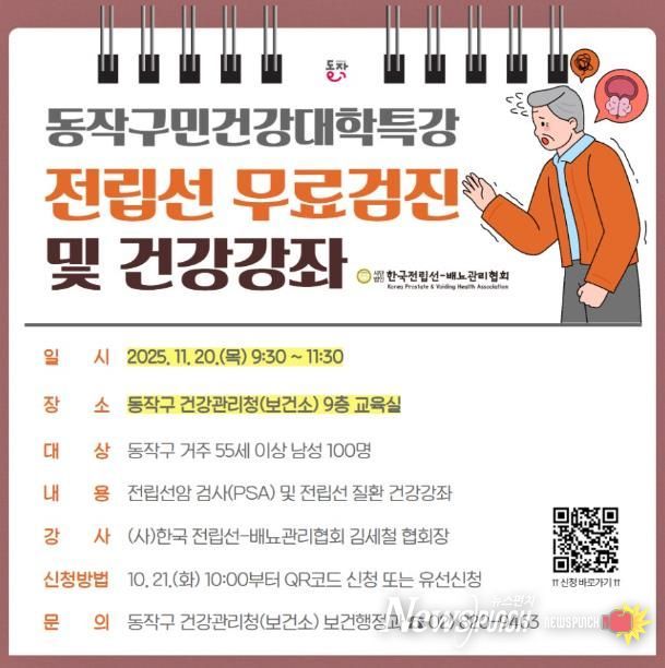 박일하 동작구청장은 “전립선질환은 조기 진단과 꾸준한 관리로 충분히 예방할 수 있는 만큼, 이번 특강이 건강한 노년을 준비하는 작은 출발점이 되길 바란다”라며 “앞으로도 구민의 활력 있는 삶을 위해 실질적인 보건 서비스를 지속적으로 제공하겠다”라고 말했다.