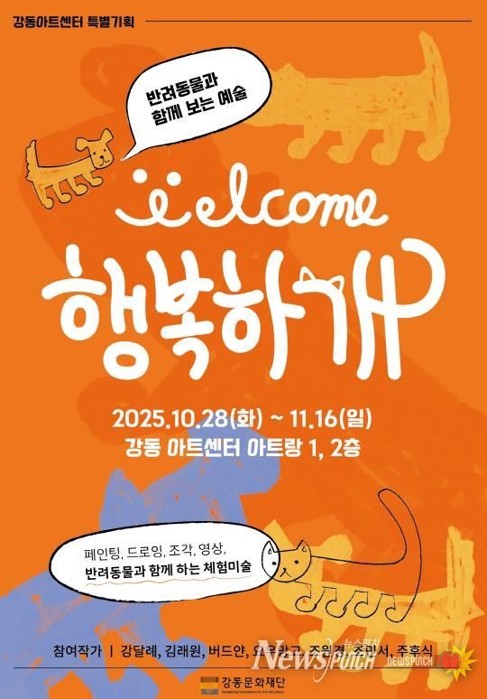 뉴스펀치 김완규 기자 | 강동문화재단은 오는 10월 28일부터 11월 16일까지 강동아트센터 아트랑에서 반려동물과 함께 예술을 경험할 수 있는 전시 《행복하개展》을 선보인다.