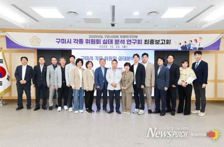 뉴스펀치 김길룡 기자 | 구미시의회 의원연구단체인‘구미시 각종 위원회 실태 분석 연구회’가 10월 20일 구미시청 3층 대회의실에서 연구·용역 최종보고회를 개최했다.