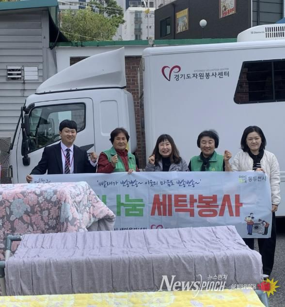 이번 봉사는 동두천시자원봉사센터에서 지원한 이동세탁차량을 활용해, 위생 관리와 세탁이 어려운 취약가구 3세대의 이불을 직접 수거한 뒤 세탁·건조해 다시 전달하는 방식으로 진행됐다.