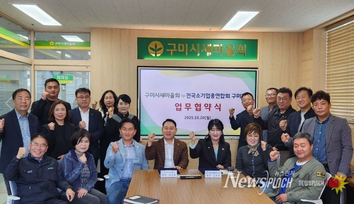뉴스펀치 김길룡 기자 | 구미시새마을회(회장 하준호)와 전국소기업총연합회 구미시지부(회장 김춘희)가 지난 20일 구미시새마을회관 3층 회의실에서 지역경제 활성화와 상생협력 강화를 위한 업무협약을 체결했다.