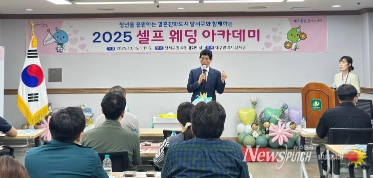뉴스펀치 조평훈 기자 | 대구 달서구는 지난 16일 구청에서 ‘2025 셀프 웨딩 아카데미’개강식을 열고, 청년들의 실질적인 결혼 준비를 돕기 위한 첫 강의를 진행했다.