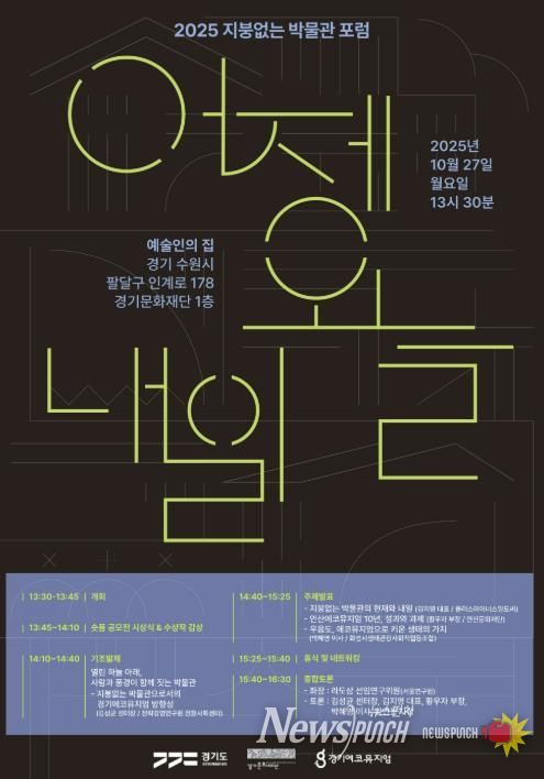 뉴스펀치 김길룡 기자 | 경기도와 경기문화재단은 일상 곳곳의 발자취를 ‘박물관’으로 만드는 지붕없는 박물관(경기에코뮤지엄)사업의 '2025 지붕없는 박물관 포럼_어제·오늘·내일'을 10월 27일 오후 1시 30분 경기문화재단 예술인의 집(수원)에서 개최한다.