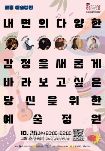 이번 ‘고흥예술정원’은 이세운 밴드와 김새아나 문화기획자가 함께하며, ‘내면의 다양한 감정을 새롭게 바라보고 싶은 당신을 위한 예술정원’을 주제로 감정 키워드를 활용한 재즈 즉흥 연주 워크숍이 진행될 예정이다.