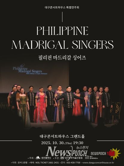 뉴스펀치 조평훈 기자 | 대구문화예술진흥원 대구콘서트하우스는 세계적 합창단체를 초청해 유네스코 음악창의도시 대구의 위상을 알리고, 시민들에게 수준 높은 합창 무대를 선보이고자 ‘필리핀 마드리갈 싱어즈’ 공연을 준비했다.