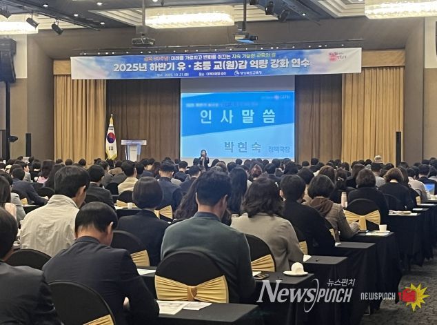 뉴스펀치 김길룡 기자 | 경북교육청은 21일 경주시에 있는 더케이호텔경주에서 도내 유․초등 교(원)감 440여 명을 대상으로 ‘2025 하반기 유․초등 교(원)감 역량 강화 연수’를 개최했다고 밝혔다.