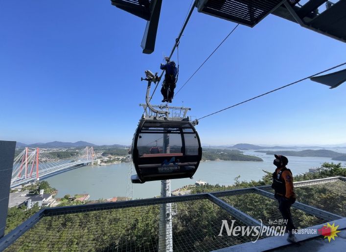 뉴스펀치 손석남 기자 | 가을여행주간을 맞이하여 전남도로 많은 가족단위 여행객들이 방문이 많아지면서 안전에 대한 관심이 높아지고 있는 가운데 명량해상케이블카는 지난 10월 20일 비상상황 대응 능력을 강화하기 위해 진도소방서와 함께 케이블카 합동 구조훈련을 실시했다.