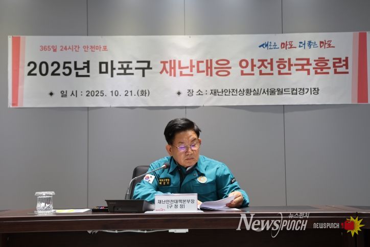 뉴스펀치 김완규 기자 | 마포구는 10월 21일 오후 2시, 재난안전상황실과 서울월드컵경기장 서문 일대에서 ‘2025년 재난대응 안전한국훈련’을 실시했다.