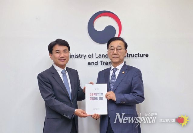 뉴스펀치 김길룡 기자 | 김진태 강원특별자치도지사는 10월 21일 서울국토발전전시관에서 김윤덕 국토교통부 장관을 만나 제5차 국가철도망 구축계획에 강원도가 신청한 10개 신규 철도사업의 최대 반영을 요청했다.