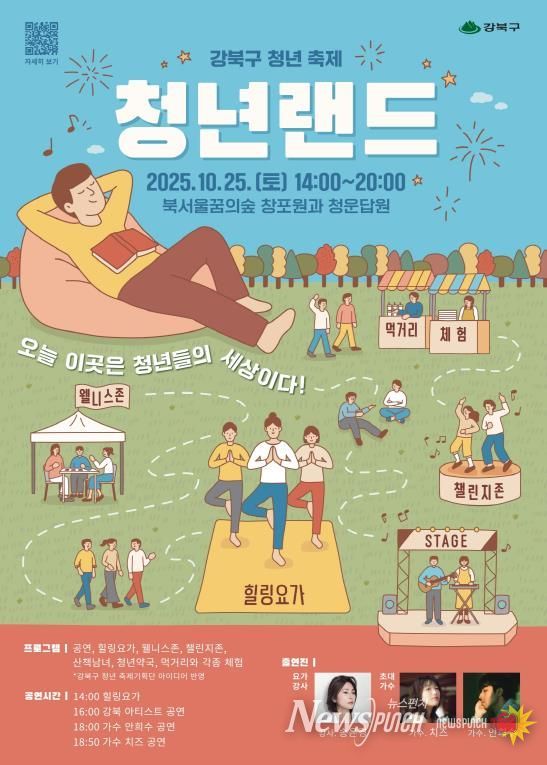 뉴스펀치 김완규 기자 | 서울 강북구는 오는 25일 오후 2시부터 8시까지 북서울꿈의숲 일대에서 ‘2025 강북구 청년 축제-청년랜드’를 개최한다고 밝혔다.