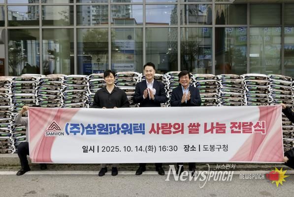 뉴스펀치 김완규 기자 | 서울 도봉구는 지난 10월 14일 ㈜삼원파워텍으로부터 쌀 10kg 500포(2,500만 원 상당)를 전달받았다고 밝혔다. ㈜삼원파워텍의 이번 기부는 2023년부터 올해로 3번째다.