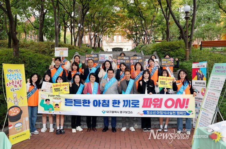 뉴스펀치 조평훈 기자 | 대구 중구는 ‘건강한 배움터 만들기’사업의 일환으로 10월 21일 오전 07:50경 계성중학교(달성로 35)에서 학생들의 등굣길에 전교생 및 교직원 700여 명을 대상으로 청소년 아침식사 실천 캠페인'든든한 아침 한 끼로 파워 ON'을 실시했다.