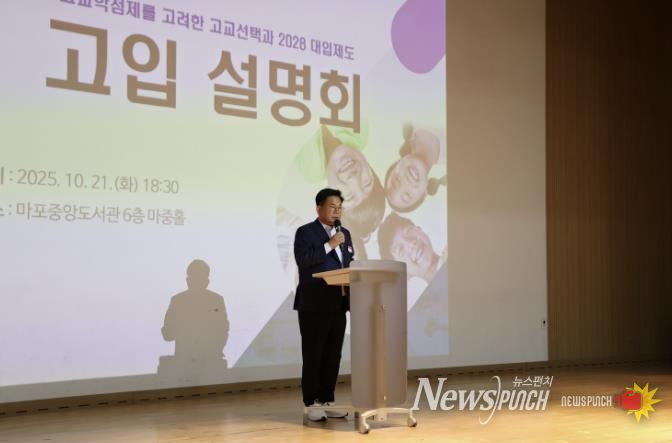뉴스펀치 김완규 기자 | 마포구는 10월 21일 오후 6시 30분, 마포중앙도서관 6층 마중홀에서 변화하는 교육과정과 복잡한 입시 제도로 어려움을 겪고 있는 관내 학생 및 학부모들에게 유용한 정보를 제공하고자 ‘2026학년도 고입설명회’를 개최했다.