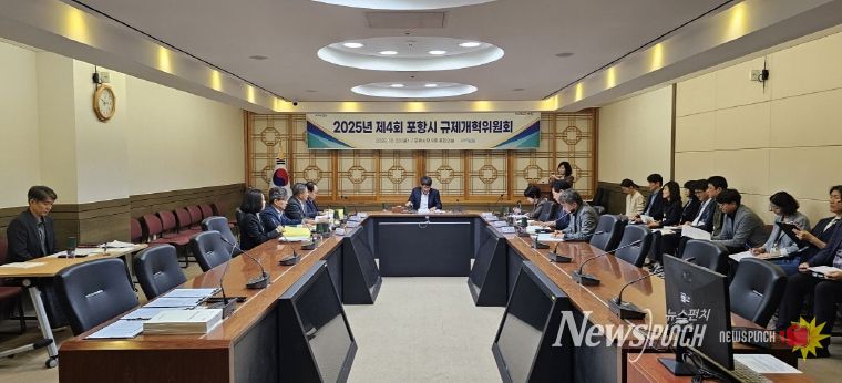 뉴스펀치 김길룡 기자 | 포항시는 지난 20일 시청 중회의실에서 규제개혁위원회 위원 및 규제 소관 부서 직원 등 20여 명이 참석한 가운데 ‘2025년 제4회 규제개혁위원회’를 개최했다.
