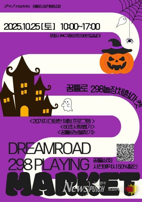 뉴스펀치 김길룡 기자 | 재단법인 포항문화재단은 오는 25일 오전 10시부터 오후 5시까지 포항 원도심 꿈틀로 일대에서 ‘꿈틀로 체험마켓 298놀장’ 10월 행사를 개최한다.