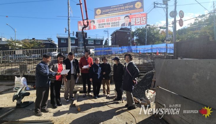 뉴스펀치 김완규 기자 | 강북구의회 유인애 의원(번1·2동, 수유2·3동)이 강북구 번동 441-1번지 진숙빌라 담장 재설치 공사 현장을 방문해 주민 안전을 위한 현장 점검을 실시했다. 이 자리에는 김원필 국민의힘 강북갑 당협위원장, 이종환 서울시의회 부의장. 이성희 전 서울시의원도 함께해 공사 추진 상황을 꼼꼼히 살폈다.