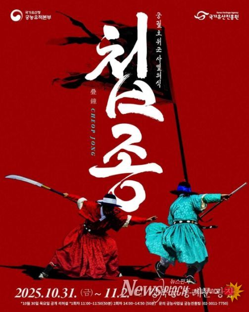 뉴스펀치 김희경 기자 | 국가유산청 궁능유적본부는 국가유산진흥원과 함께 10월 31일부터 11월 2일까지 하루 2회(오전 11시, 오후 2시) 경복궁(서울 종로구) 흥례문 광장에서 '2025년 궁궐 호위군 사열의식 ‘첩종(疊鐘)’' 행사를 개최한다.