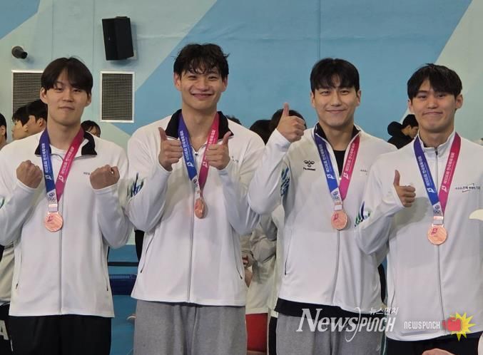 또한 김영현 선수는 자유형 1500m에서 은메달, 자유형 400m에서 동메달을 차지하며 장거리 종목 강자로서 안정된 경기력을 선보였으며, 고성민·김민석·김영현·윤인서 선수가 함께 출전한 계영 800m 단체전에서도 동메달을 획득해 팀워크의 진가를 발휘했다.