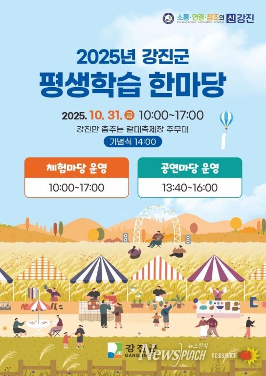 뉴스펀치 김길룡 기자 | 강진군이 오는 31일 강진만 춤추는 갈대축제가 열리는 강진만 생태공원에서 2025 강진군 평생학습 한마당을 개최한다.