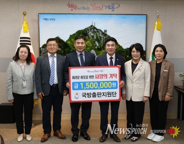뉴스펀치 김길룡 기자 | 계룡시는 지난 24일 국방출판지원단(단장 신기진)으로부터 현금 150만 원을 기탁받았다고 밝혔다.