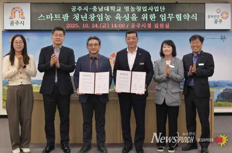 뉴스펀치 김길룡 기자 | 공주시는 충남대학교 영농창업특성화사업단과 스마트 청년창업농 육성을 위한 업무협약을 체결했다고 밝혔다.
