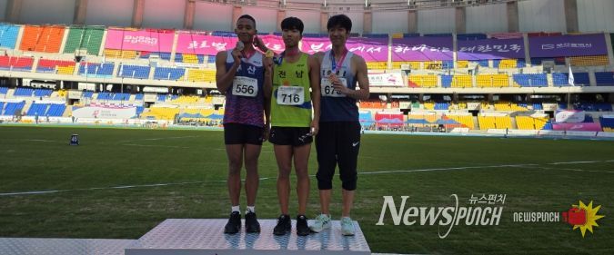 육상팀의 조상현 선수는 남자 400m 허들 종목에서 금메달을 획득하며 전국 정상에 올랐다.