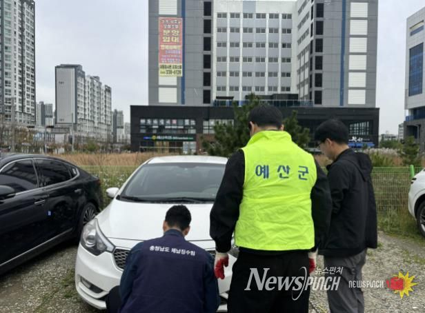 뉴스펀치 김길룡 기자 | 예산군은 2025년 하반기 지방세 체납액 집중 정리기간을 맞아 충청남도·당진시와 함께 상가지역 등 주차 밀집지역을 중심으로 자동차세 체납차량에 대한 번호판 합동 영치를 실시했다고 밝혔다.