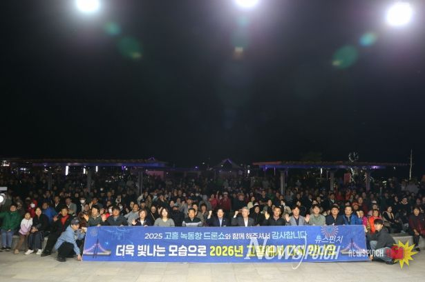 뉴스펀치 김길룡 기자 | 고흥군은 지난 25일 녹동항 바다정원 일원에서 열린 2025 녹동항 드론쇼 폐막식을 5천여 명의 군민과 관람객이 함께 참여한 가운데 성황리에 마쳤다고 밝혔다.