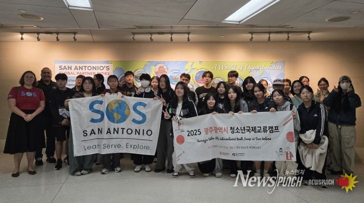 뉴스펀치 김길룡 기자 | 광주지역 청소년 20명이 자매도시인 미국 텍사스주 샌안토니오시를 방문, 청소년·문화 교류를 통해 43년의 굳건한 우정을 다지고 있다.