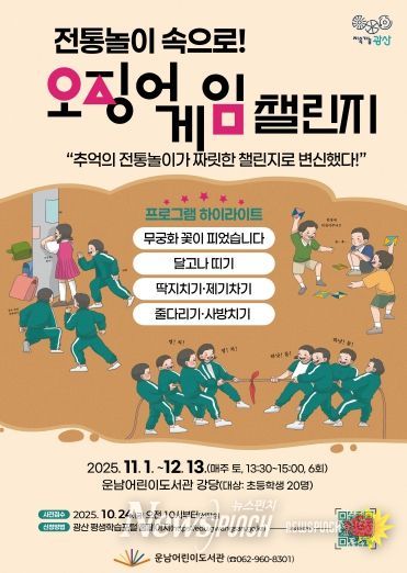 11월 1일부터 12월 13일까지 매주 토요일(11월 8일 제외)에는 초등학생 20여 명을 대상으로 전통놀이 체험 프로그램인 ‘전통놀이 속으로, 오징어게임 챌린지!’를 운영한다.