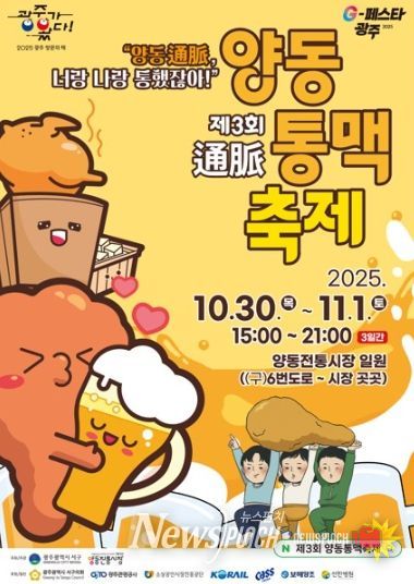 뉴스펀치 조은별 기자 | 100년 역사를 자랑하는 양동전통시장 고유의 맛과 멋을 즐기는 ‘아주 특별한 미식관광형 축제’인 제3회 양동통맥축제가 오는 30일 막을 올린다. 광주광역시 서구는 30일부터 11월1일까지 3일간 양동전통시장 구6번로와 태평교 일대에서 모든 세대가 소통하는 양동통맥축제를 개최한다고 밝혔다.