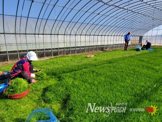 뉴스펀치 김길룡 기자 | 해남군 특화작목 세발나물 수확이 시작됐다.