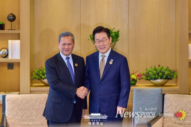 뉴스펀치 김용희 기자 | 이재명 대통령은 27일 오전 제47차 아세안 정상회의 참석을 계기로 ‘훈 마넷’ 캄보디아 총리와 취임 후 첫 양자회담을 가졌다.