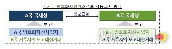 국세청은 정보교환협정 가입국과 상대국 거주자의 암호화자산 거래정보를 상호교환 하며, 첫 정보교환은 ’26년 거래정보에 대해 ’27년 이행 예정이다.