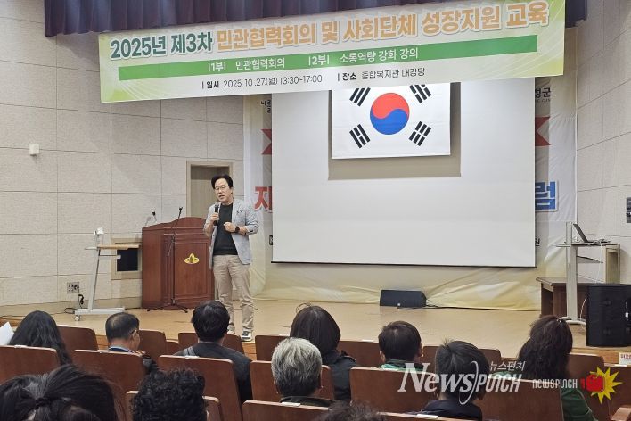 뉴스펀치 김길룡 기자 | 의성군은 10월 27일 종합복지관 대강당에서 관내 사회단체 임원 및 실무자 등 70여 명이 참석한 가운데 ‘2025년 제3차 민관협력회의 및 성장지원교육’을 개최했다고 밝혔다.