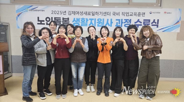 뉴스펀치 정홍균 기자 | 김제시여성새로일하기센터는 지난 28일, 보건소 3층 직업훈련실에서 '노인돌봄 생활지원사 양성과정' 수료식을 마친 뒤, 수료생 14명을 대상으로 ‘생활지원사 실무특강’을 운영했다고 밝혔다.
