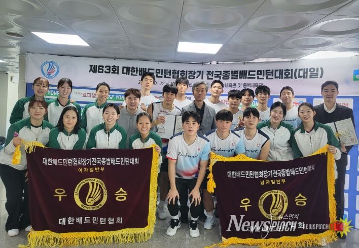 뉴스펀치 김길룡 기자 | 김천시청 배드민턴단이 10월 22일부터 29일까지 전남 해남군 우슬체육관에서 열린 제63회 대한배드민턴협회장기 전국종별배드민턴대회에서 남자 단체전과 여자 단체전 모두 우승을 차지하며 전국 최강 실업팀의 저력을 입증했다.