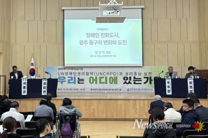 뉴스펀치 김길룡 기자 | 광주 동구는 동구장애인복지관(관장 장세종)과 최근 ‘UN 장애인권리협약과 권리 중심 실천 과제 심포지엄–우리는 어디에 있는가?’를 개최했다고 밝혔다.