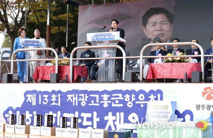 뉴스펀치 김길룡 기자 | 고흥군은 지난 2일 광주 첨단체육공원에서 열린 제13회 재광주고흥군향우회 화합 한마당 체육대회에서 전국적인 고향사랑기부제 홍보에 나섰다고 밝혔다.
